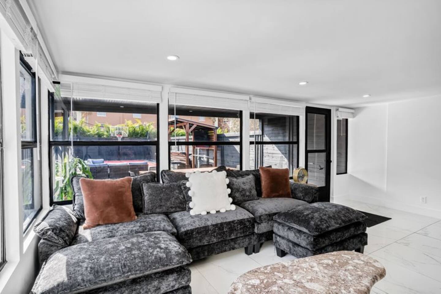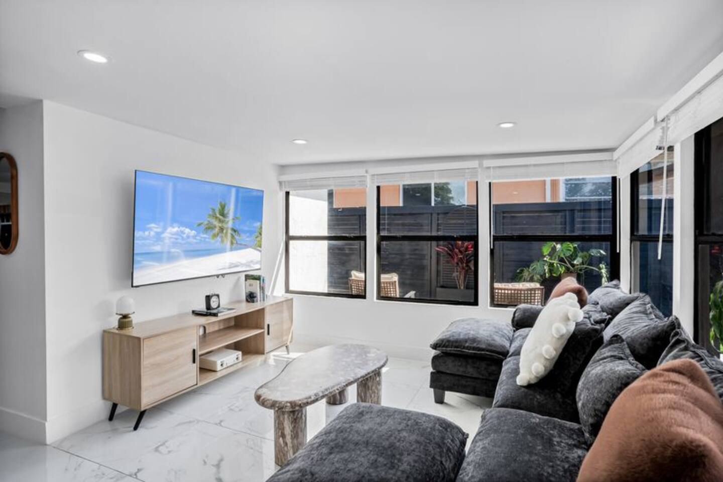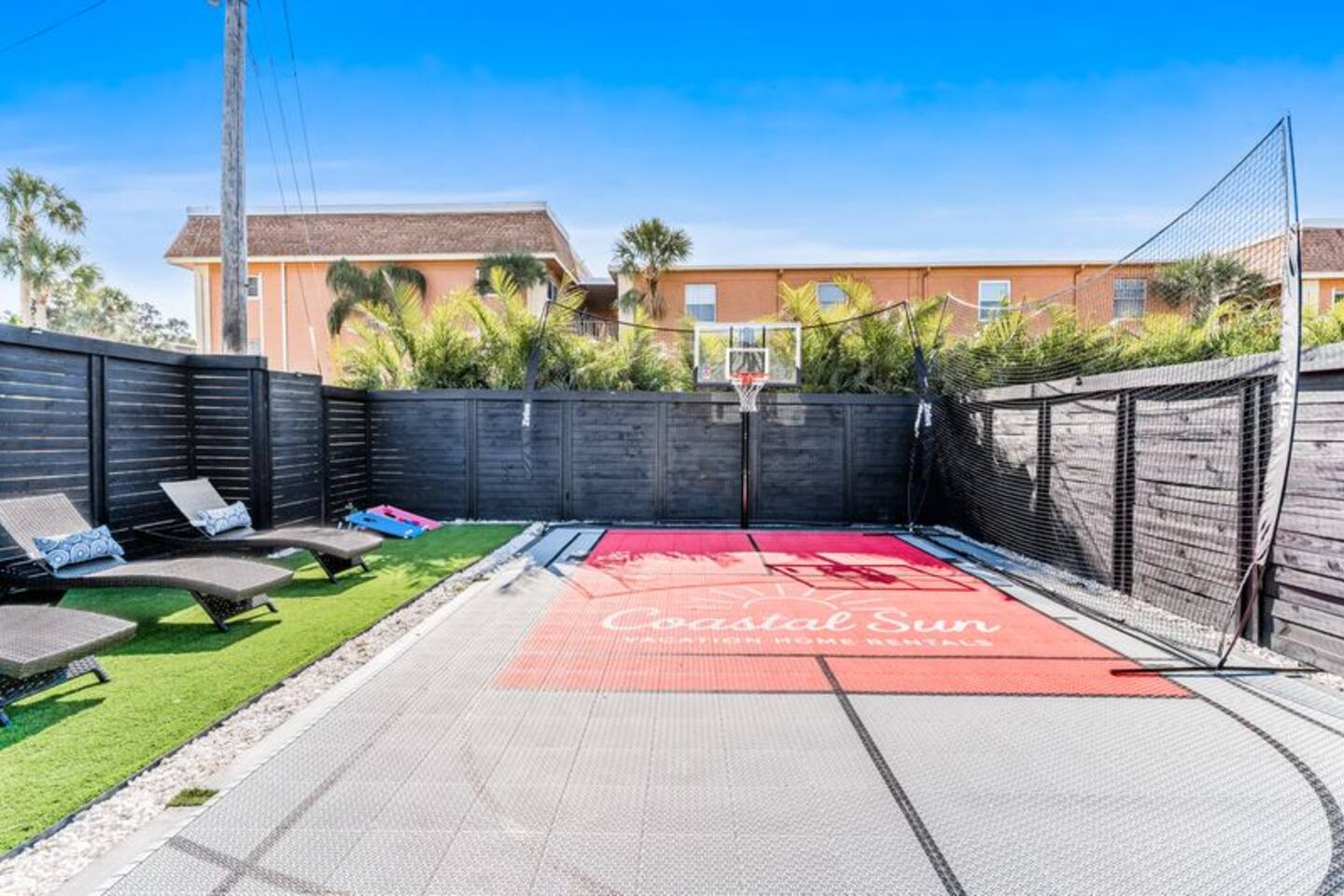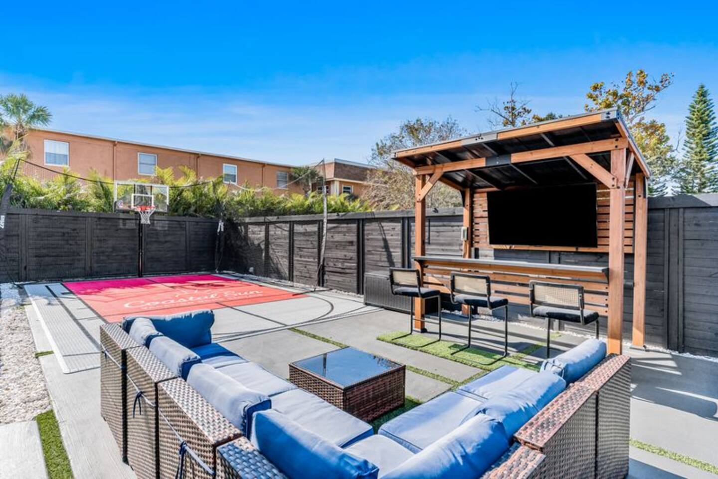Welcome to your perfect coastal getaway! This modern, super clean 3-bedroom home sits in a quiet neighborhood just a 5-minute drive to beautiful Indian Rocks Beach. You're close to grocery stores and pharmacies for total convenience. The backyard offers a private entertainment oasis with a basketball court, pickleball, hot tub, cornhole, and an outdoor TV. Inside, each bedroom has a smart TV, providing comfort, style, and the perfect setup for families or friends.